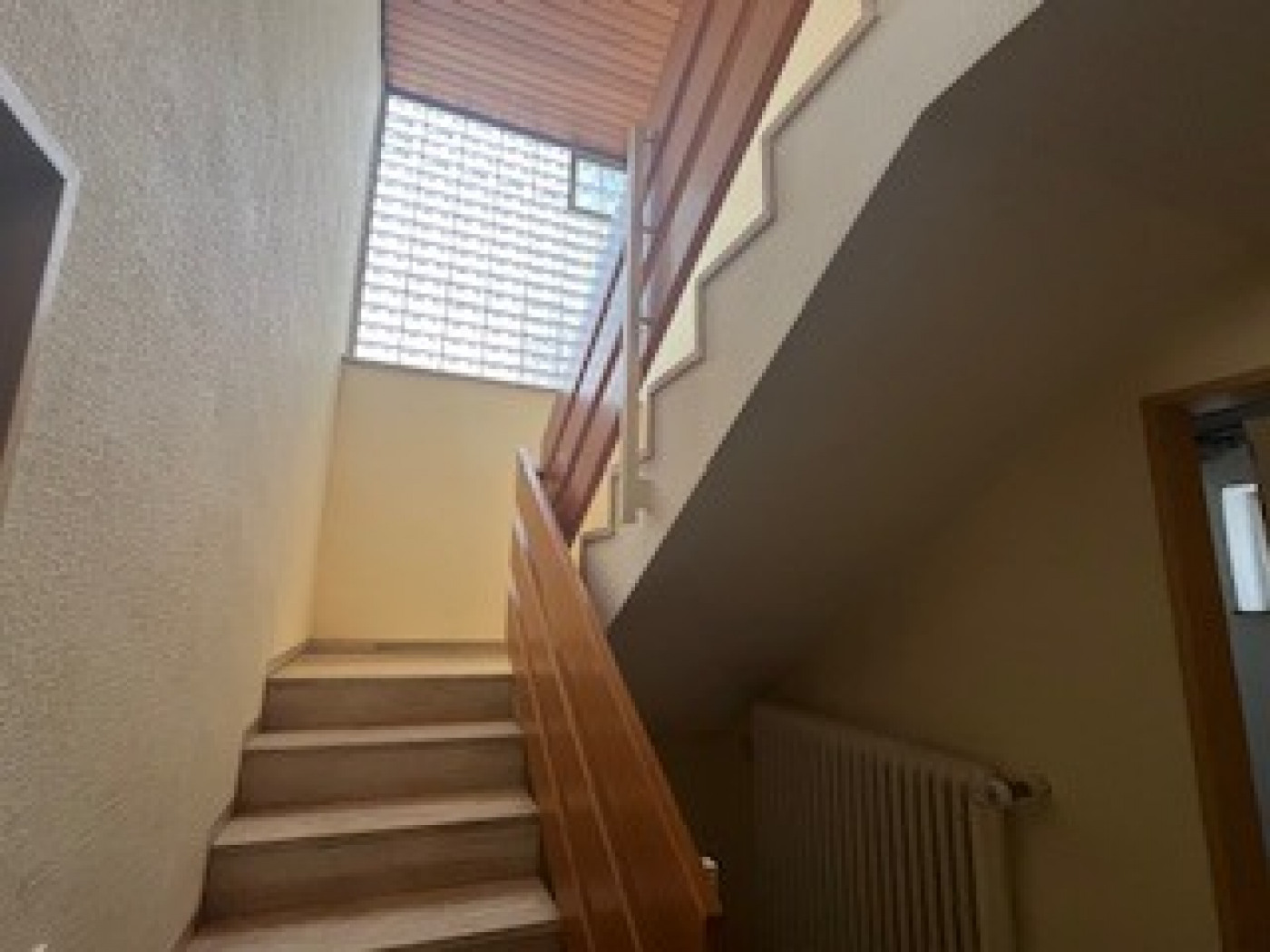Die Hauptwohnung verfügt über ein sehr großes Wohn-/Esszimmer mit Zugang zum Balkon mit großen Fenster, die viel Tageslicht reinlassen, sowie Küche, Schlafzimmer, Bad, G-WC und Abst.-Raum. Von hier aus gelangt man in die Garage und auf die Terrasse. das Treppenhaus ist mit einer schönen Marmortreppe ausgestattet. Im Wohnzimmer im EG ist ein heller Dielenboden vorhanden.