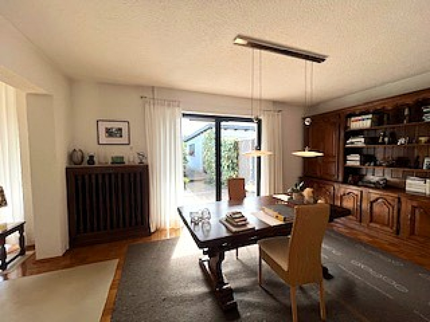 großes Wohn-/Esszimmer mit Zugang zur Terrasse und dem Garten, komplett eingerichteter Küche, G-WC, große Diele mit Arbeitsbereich (Büro)