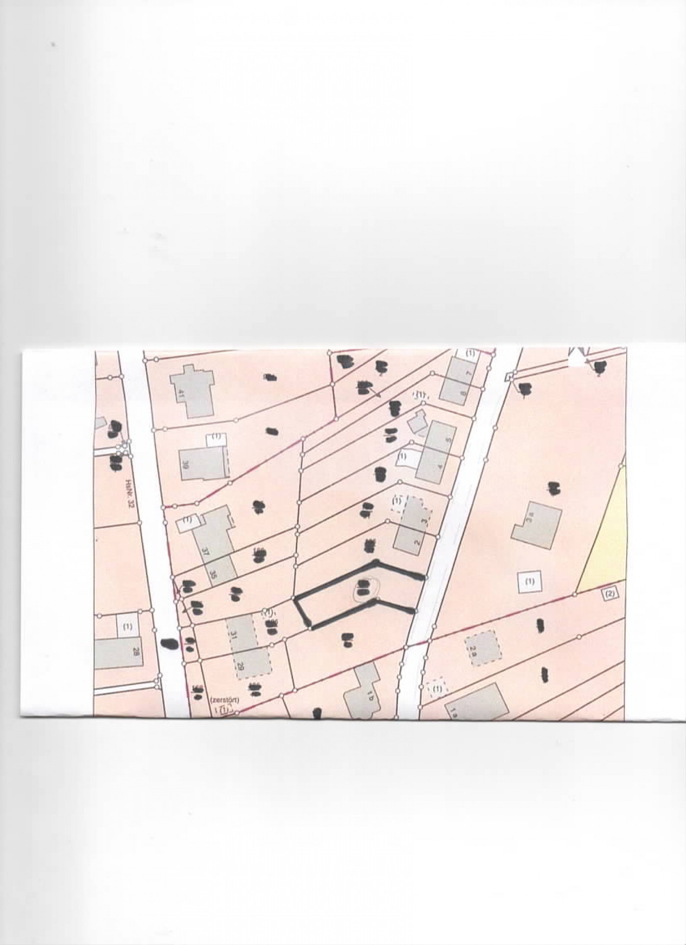 Dieses Baugrundstück ist mit Bäumen bewachsen. Die Straßenfront beträgt ca. 12 m, Tiefe ca. 43 m.